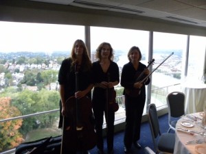Our string trio played at the very top floor of the building for a family’s  post-wedding celebration. The place has a very nice atmosphere, friendly staff and a great view of Pittsburgh – my faithful photographer, husband, took this picture of us overlooking the city. The only thing it was very cold inside, which reflected in cello sounding a bit off at the beginning. The wood was cold and needed more time than usual to warm up since it is a bigger instrument than violin or viola.