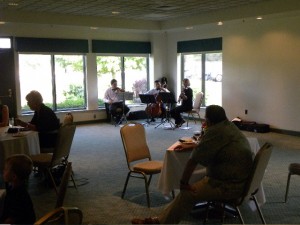 Cocktail hour violinist and a cellist duet on Gateway Clipper