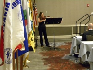 Cocktail hour violinist and a cellist duet on Gateway Clipper