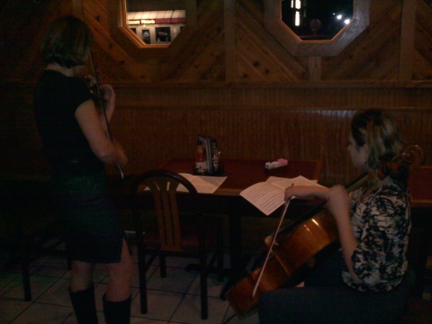 Cocktail hour violinist and a cellist duet on Gateway Clipper