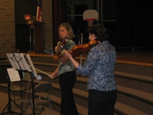 A string duo playing at the wedding ceremony on Gateway Clipper