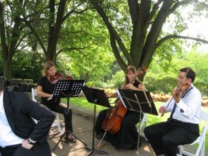 A string duo playing at the wedding ceremony on Gateway Clipper