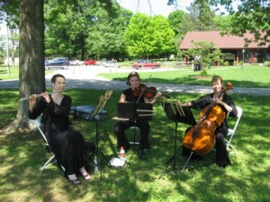 A string duo playing at the wedding ceremony on Gateway Clipper